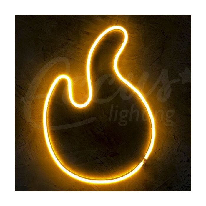 O led neon acompanha, uma estrutura em ferro no fundo do neon, além de ajudar a fixar o led neon dá acabamento a peça. Ele também é usado de suporte para fixar a peça na parede e ajuda a deixar os fios mais discretos.