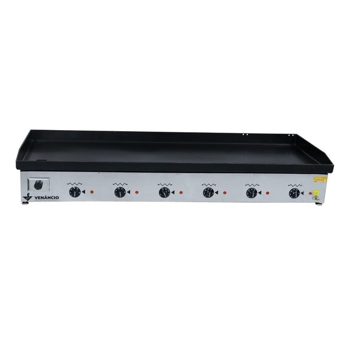 Chapa Bifeteira Elétrica 140cm Venâncio Deguste Luxo 4,76mm de Espessura 220V CE140-49819A Chapa Bifeteira Elétrica 140cm Venâncio Deguste Luxo é uma ferramenta de cozinha robusta e eficiente. Com sua chapa superior em aço carbono de espessura padrão 4,76 mm, ela é perfeita para uso em restaurantes, lanchonetes, food trucks e até mesmo em casa. Seja para preparar um delicioso hambúrguer ou um bife suculento, esta chapa garante um aquecimento uniforme e rápido.As resistências bem distribuídas posicionadas abaixo da chapa garantem um aquecimento uniforme, e o controle individual das resistências através de termostato permite ajustar a temperatura de acordo com a necessidade, podendo chegar até 300ºC. Além disso, a Chapa Bifeteira Elétrica Venâncio Deguste Luxo é fácil de manter, graças à sua manutenção simples e barata. Este equipamento opera com uma voltagem de 220V e possui 6 resistências de 1800W cada, totalizando uma potência de 10800W. Isso garante um aquecimento eficiente e rápido, economizando tempo e energia.Cozinhe com eficiência e estilo com a Chapa Bifeteira Elétrica 140cm Venâncio Deguste Luxo. Garanta já a sua e prepare pratos incríveis com rapidez e qualidade!