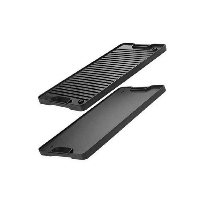 Chapa De Ferro Dupla Face Chapa de ferro fundido dupla-face retangular com 50 cm de comprimento x 25 cm de largura. Deve ser utilizada diretamente sobre a chama do fogão a gás, a lenha, elétrico ou de indução, e também em churrasqueiras Pode ser utilizada dos 02 lados sendo que um dos lados tem a chapa toda lisa e o outro lado a chapa é estriada para preparar grelhados. Código:0900 Peso: 5,7 kg Itens Inclusos: 01 Chapa De Ferro Dupla Face 50 X 25 Cm