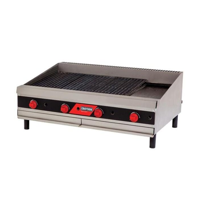 Char Broiler Croydon CCP4 com gabinete em aço inox e grelha em ferro fundido.