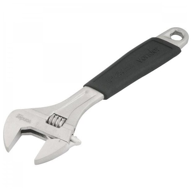 Medida total da chave: 10" / Material do corpo da chave: Aço carbono / Acabamento da Chave: Niquelado / Capacidade de abertura da chave ajustável: 29 mm