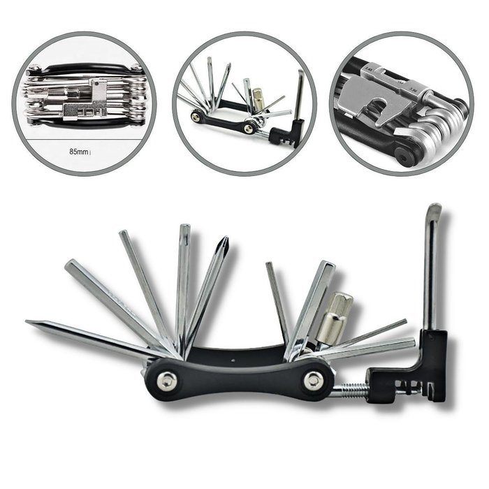 Chave Canivete Para Bicicleta 12 funções Chave de Corrente, ótima para reparos e apertos na bike antes, durante e após o pedal. Seu tamanho compacto é de fácil armazenamento e transporte para qualquer lugar em que for pedalar. As chaves compostas de aço inoxidável, garantem a qualidade e durabilidade do produto. Destaque para chave de corrente embutida no conjunto, Compacto Para Levar Em Sua Bicicleta Como Bolsinha Ou Ate Mesmo Em Seu Bolso Pronto para Qualquer Manunteção Em Sua Residencia.Descrição: Canivete de bolsaCor: Polido e pretoMaterial: Chaves em aço e superfície em níquel galvanizadoPeso: 0,183 gr.Funções1 Chave allen de 2 mm1 Chave allen de 2,5 mm1 Chave allen de 3 mm1 Chave allen de 4 mm1 Chave allen de 5 mm1 Chave allen de 6 mm1 Chave allen de 8 mm1 Chave de fenda de 5 mm1 Chave phillips1 Chave Torx 4mm1 Chave extratora de corrente