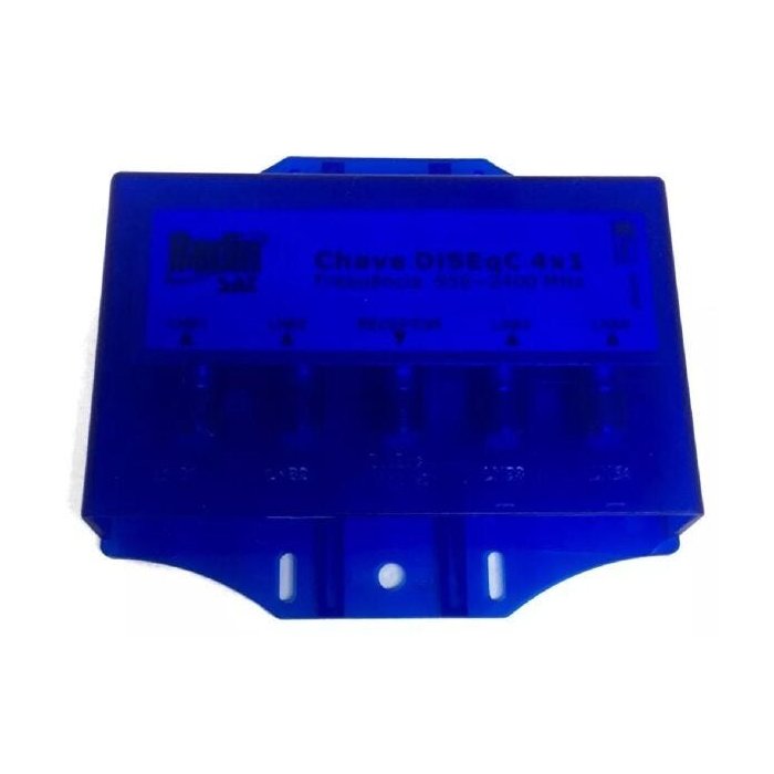 A chave comutadora de antenas Bedinsat padrão DiSEqC 4X1, representa a mais alta tecnologia internacional e tem como finalidade a instalação de várias antenas em um ou mais receptores no sistema digital via satélite (parabólica). É a solução para ligar até quatro antenas, sejam de banda KU ou banda C, no mesmo receptor e a seleção da antena se dá de forma automática, ou seja, quando você sintoniza um canal, a chave reconhecerá em qual antena localiza-se o sinal e a selecionará automaticamente. Esta chave é compatível com praticamente todos os receptores que tenham suporte à diseqc 1.0, 1.1 e 2.0.