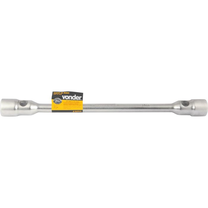 Marca: VonderConteúdo da Embalagem:1 Chave de rodaDestaques e diferenciais:Produzida em aço como vanádio, proporcionando maior resistência e durabilidade. Possui acabamento zincado, que confere maior proteção à oxidação/corrosão.Aplicações e dicas de uso:Indicada para apertar e soltar porcas e parafusos sextavados de rodas de caminhões, ônibus, tratores, entre outros. Não acompanha manípulo/cabo. Utilizar manípulo/cabo com diâmetro de 19 mm x comprimento de 500 mm.Características Técnicas:Medida da chave de roda: 27 mm x 27 mm Material do corpo da chave: Aço cromo vanádio Acabamento da chave: Zincado