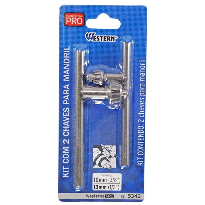 KIT COM 2 CHAVES PARA MANDRIL - Dimensões da Peça: - 1 Chave Mandril: 9,9 x 3,4 x 1,3cm - 1 Chave Mandril: 11 x 4,2 x 1,7cm - Dimensões da Embalagem: 7 x 2 x 16cm - Quantidade Inner: 40 Peças - Dimensões Inner: 23 x 19 x 15cm - Quantidade Master: 240 peças - Dimensões Master: 48 x 26 x 40cm - Material: Aço carbono - Cor: Prata Tipo de Embalagem: Blister - Marca: Western - Origem: China - Contém: 2 Unidades - Cuidados: - Para reduzir o risco de lesões, sempre use adequadamente equipamentos de proteção individual (óculos de proteção, botas, máscara, luvas, etc...). Necessário ao trabalho. - Desconecte o plugue da tomada antes de fazer qualquer tipo de ajuste e mudança de acessório. Tais medidas preventivas de segurança reduzem o risco de se ligar a ferramenta acidental. - Guarde em local seguro. - Manter fora do alcance das crianças.