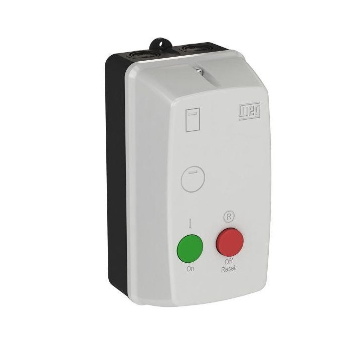 Chave de Partida Direta Trifásico 380V para motor de 5cv com Relé Falta de Fase PDW05 WEG Chaves de partida direta trifásica para manobras e proteção de motores em caixas termoplásticas. Principais características Tensão de emprego e comando - 380V Potência - 5cv Faixa de ajuste corrente: 7 a 10A Grau de proteção IP52 e IP65/66 Composição - Contator + Relé de sobrecarga + Relé Falta de Fase Acionamento: Liga - desliga