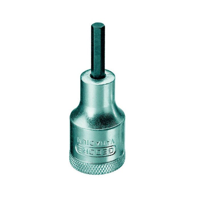 Aço Gedore-Vanadium. Soquete zincado e ponta escurecida. Para trabalhar com acessórios manuais com Encaixe 1/2", conforme DIN 3120 - C 12.5, ISO 1174. Indicado para parafusos com sextavado interno. Permite introduzir e remover o parafuso de forma rápida. Modelo curto.