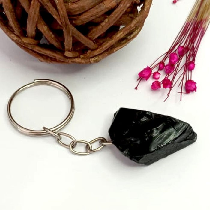 Chaveiro de Pedra Obsidiana Negra Bruta Proteção Purificação
