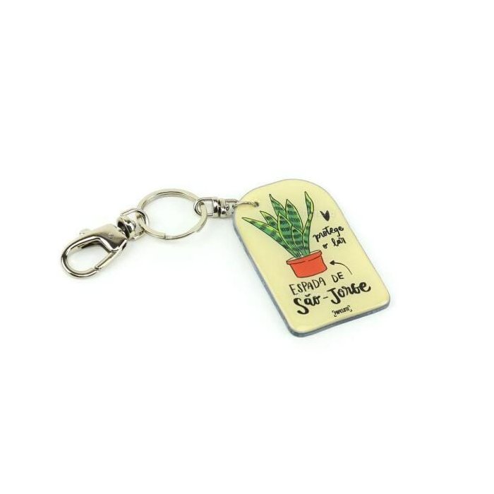 Ama colecionar chaveiros fofos? Então o Chaveiro Espada de São Jorge é para você! Ele é um mimo, vem estampado com a Espada de São Jorge, muito conhecida como uma planta protetora que afasta as energias negativas! E além de tudo, ele ainda conta com um espelhinho super lindo no seu verso! Esse chaveiro é tudo de bom!