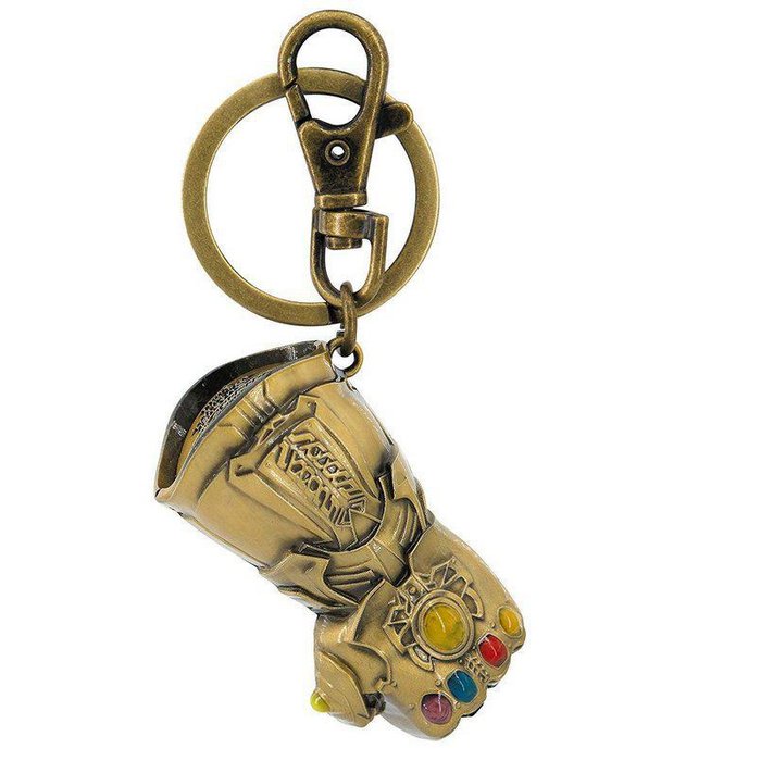 A Manopla com as Joias Infinitas de Thanos foi miniaturizado em um chaveiro de metal Agora você pode levar sua mini manopla para onde quiser com essa miniatura de chaveiro que a franquia Marvel preparou para você colecionador Garanta já o seu