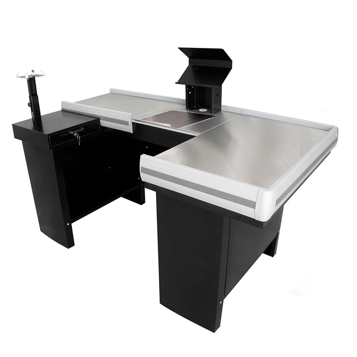 Checkout Leve BCL.15 C/ Recorte P/ Balança - 1,50 m Ajustável Direita/Esquerda Formato L Perfil Pret