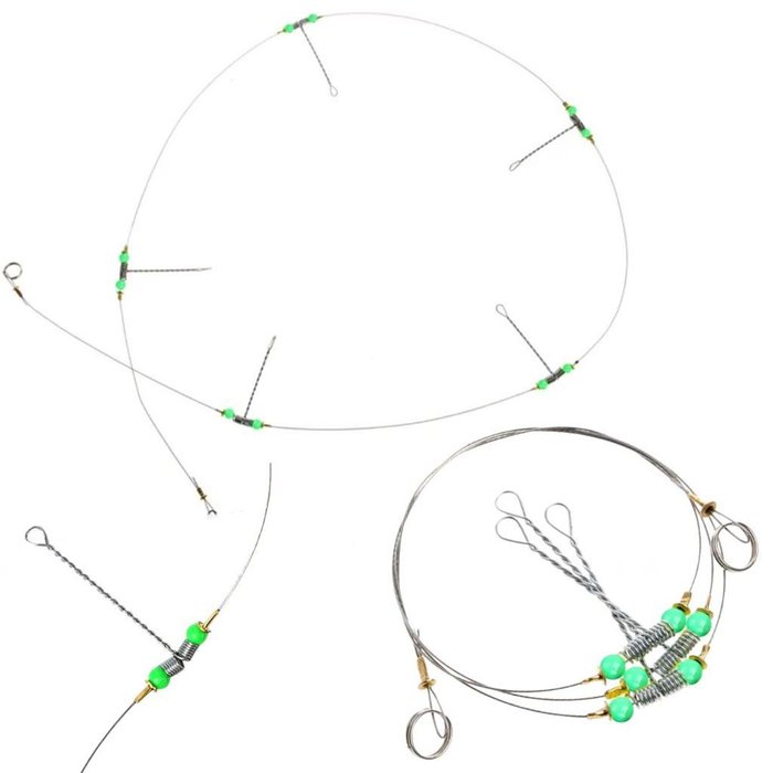 Chicotes Pronto Aço Flexível para 5 anzóis, possui uma estrutura excelente para pesca tanto em Mar e Rio , possui miçanga brilhante para Aguas Turva e fundo, possui 70cm. Possui alta Resistencia para grandes troféus