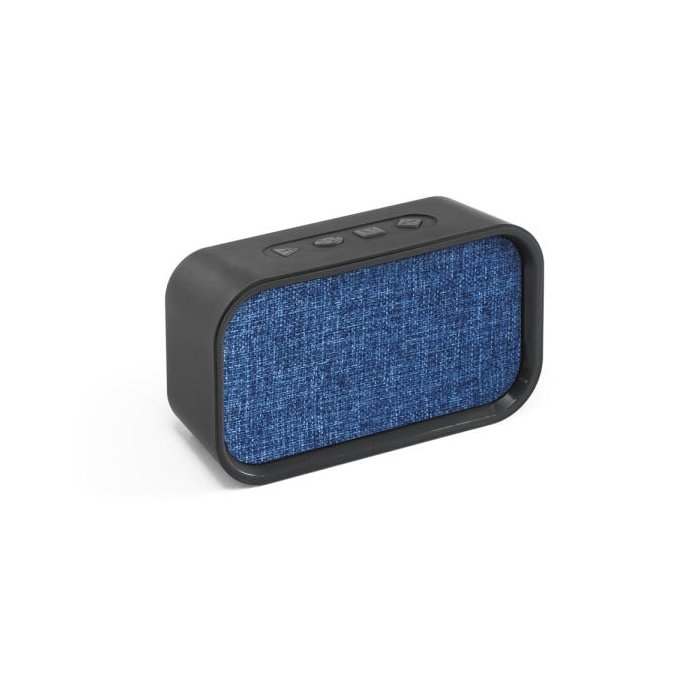 Caixa de som com microfone. ABS e tecido em poliéster. Acabamento emborrachado. Com transmissão por bluetooth, ligação stereo 3,5 mm e leitor de cartões TF. Com 3W/4Ω. Função para atender chamadas, controle de volume, conexão à playlist do dispositivo móvel e rádio FM. Incluso cabo USB para carregar. Fornecida em caixa presente. 140 x 80 x 45 mm | Caixa: 160 x 82 x 60 mm
