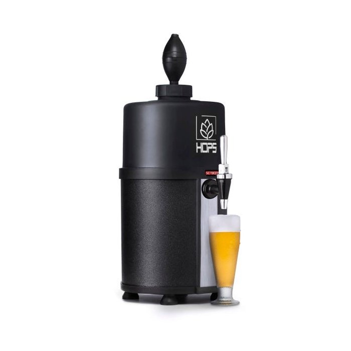 CARACTERÍSTICAS:Pode ser usada para: cerveja, refrigerante, suco, água de coco, vinho, chás, etc.Marca: SetbeerModelo: HopsCor: PretoCapacidade: 4,1 litrosTorneira com alavanca alemã com bico controlador de vazãoAlavanca: Para frente ejeta de forma rápido e para traz ejeta de forma lenta.Serpentina com 10 metrosIsolação Térmica: Polietileno Expandido Material: Polietileno e Alumínio Pés antiderrapantesConsumo 12,5 litros/horaDesign modernoNão utiliza energia elétricaChopp gelado em 1 minutoFácil manuseio e higienização