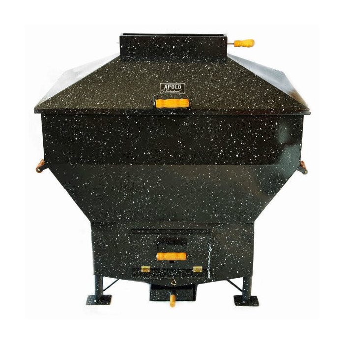 É grande a procura por carnes assadas nestes estabelecimentos, e aí entra a Apolo Industrial com grande sucesso. Construída em chapa de aço, esmaltada à fogo com acabamento granitado, possui: grelha de carne em aço inox, bandeja para assados, gaveta de carvão com grelhas em ferro fundido, caixa de gordura e defletor.