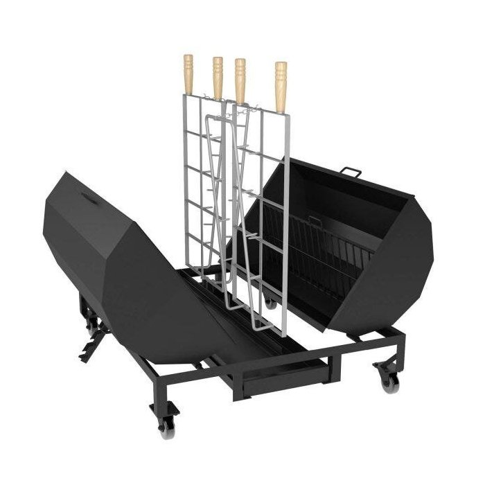 | Itens Inclusos | 01 churrasqueira com braseiro duplo; 02 espetos grandes; 01 atiçador/puxador. |