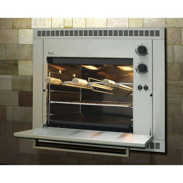 Churrasqueira a Gás de Bancada/Embutir Fischer BivoltA Churrasqueira Gás Fischer Ranch pode ser instalada em bancada ou embutida em alvenaria e não produz fumaça. Seus espetos rotativos proporcionam um assado uniforme e através dos controladores de gás é possível regular a potência dos queimadores infravermelhos. Possui lâmpada interna e seu interior é esmaltado em easy clean.Bancada ou embutir, queimadores infravermelhos e acabamento em aço inox escovado (inclusive a moldura). Lâmpada interna, acendimento automático, espetos rotativos, controle individual dos queimadores, porta de acesso para limpeza, bandeja esmaltada para resíduos, acompanha 2 espetos simples e 2 duplos, grelha cromada, corpo interno esmaltado easy clean