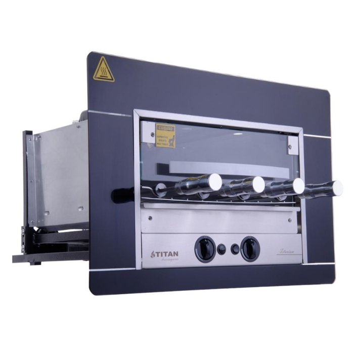 Churrasqueira a Gás de Embutir Titan Titanium Preto 4 Espetos Rotativos 220v