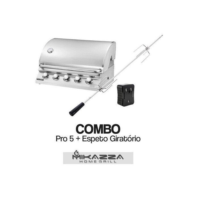 Churrasqueira à Gás Embutir Mikazza Pro 5 + Espeto Giratório