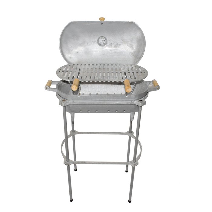Churrasqueira Alumínio Fundido a Bafo Prata Pé e Suporte Prata