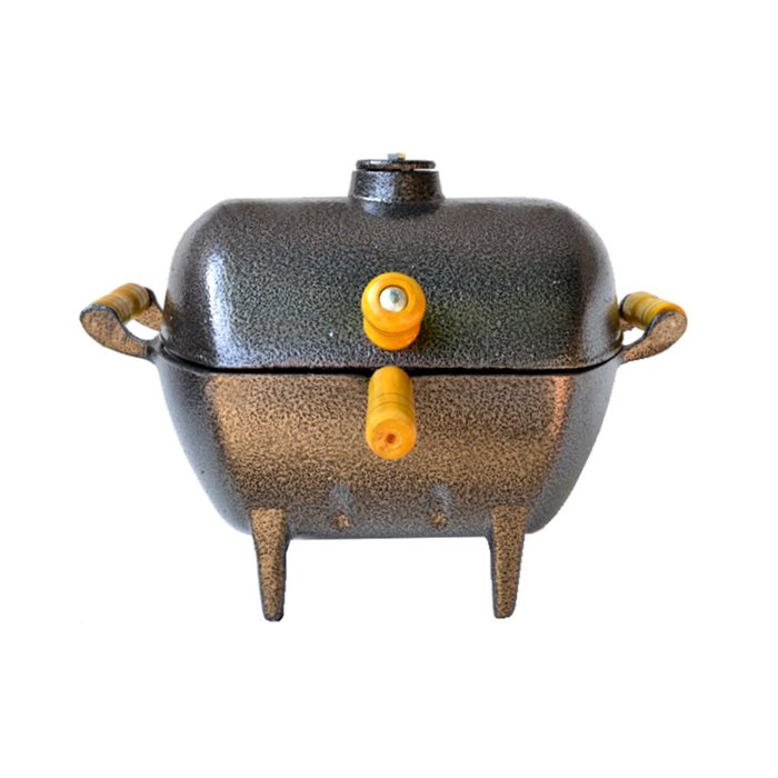 01 Churrasqueira Alumínio Fundido Craqueada Preta a Bafo 29x23cm.