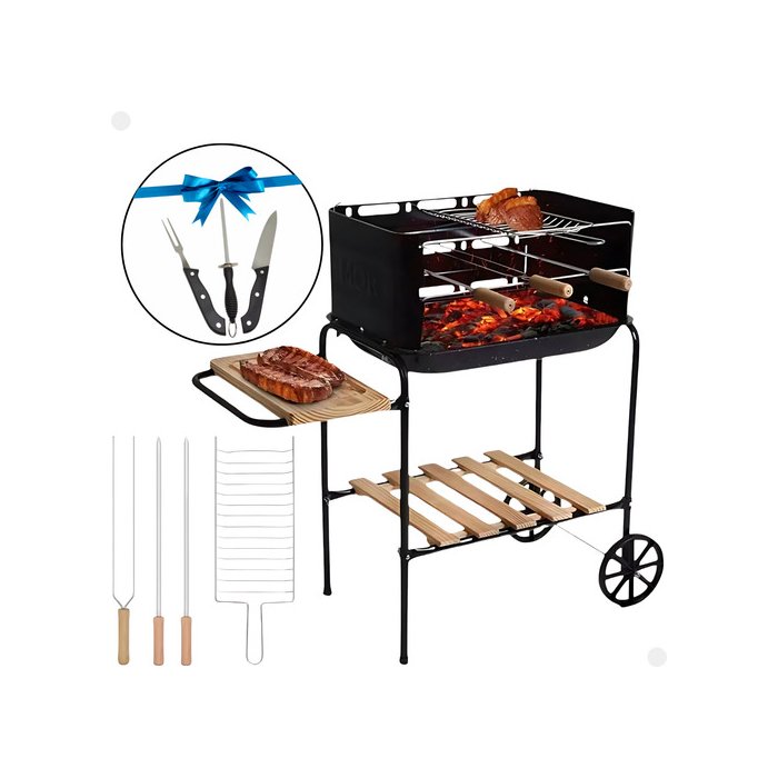 Churrasqueira Carvão Portátil + Brinde Kit Churrasco Inox