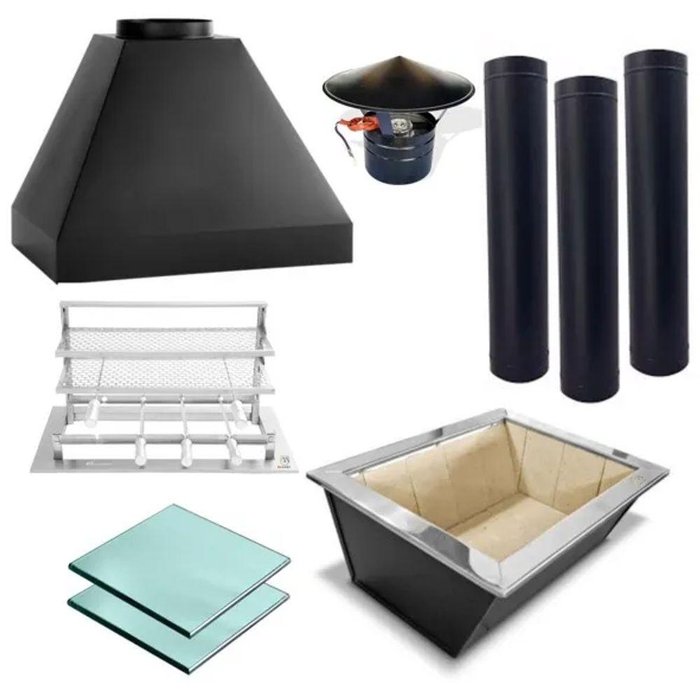 Churrasqueira com acabamento soldado e micro lixado, com aparência de peça única, sem recravas, emendas ou arrebites aparentes.Composição do kit:- 01 Chapéu chinês preto 8" (200 mm) com suporte para exaustor;