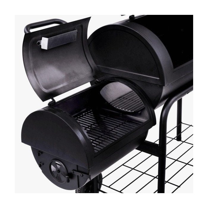 Esse modelo, além de ser uma churrasqueira à carvão tem acoplado uma câmara de defumação, desta forma fica fácil cozinhar e grelhar carnes, peixes, frangos, e também defumar alimentos.