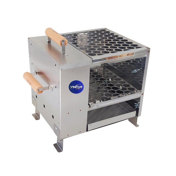 Churrasqueira a carvão para apartamento em aço inox 430, ideal para ser utilizada em locais fechados como varandas, sacadas e áreas de serviço, pois não produz fumaça.