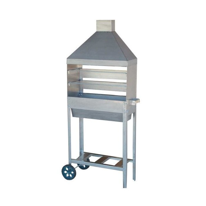 Modelo produzido em Aço Inox, Pernas, Laterais, Frente, Suporte do Carvão, Acabamentos, Grade de Segurança, Suporte dos Espetinhos Ferro Galv, A Coifa é Inox