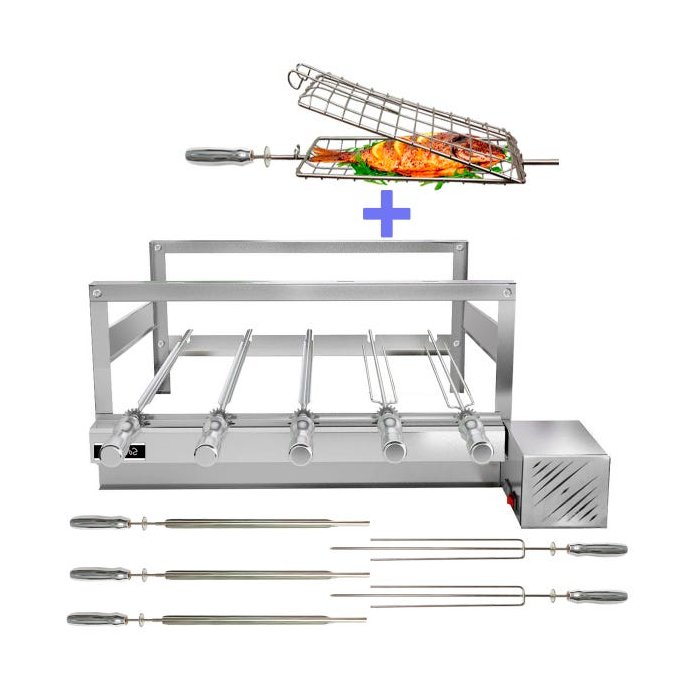 Churrasqueira Giratória Inox Gira Soft Grill 5 Espetos + Espeto Grelha Lado Direito