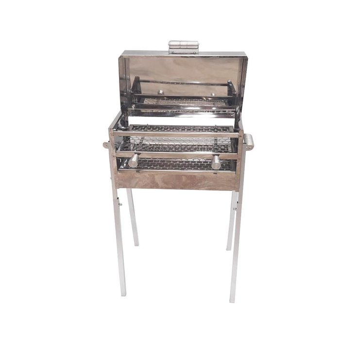 | Modelo | Churrasqueira inox espetinho 2 grelhas e espetos tampa bafo |