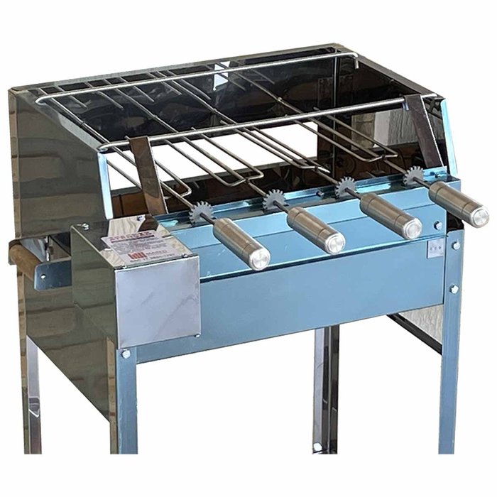Churrasqueira Inox Giratória 4 Espetos Tamanho 55x41 Com Kit Giratório Rodinhas e Puxador