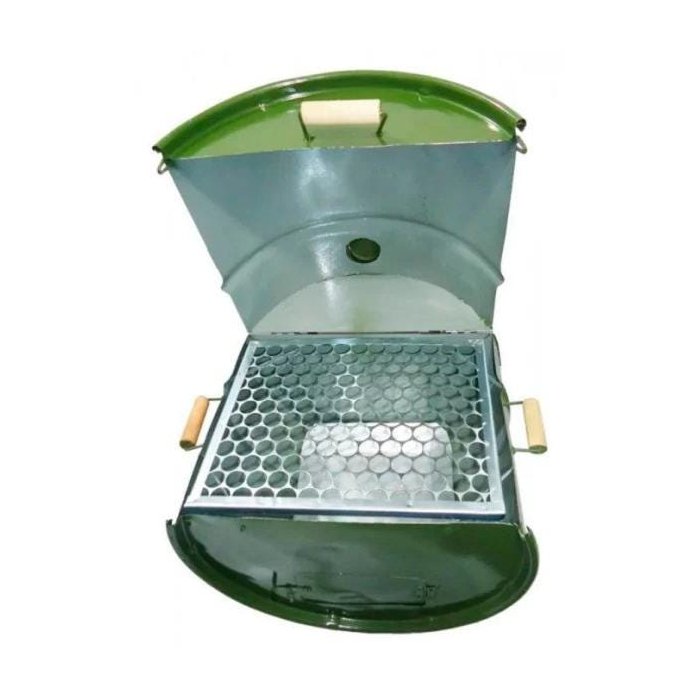Churrasqueira a Bafo aquecimento com carvão vegetal com 1 grelha moeda e 1 bandeja (porta carvão) Capacidade: 100 litros (metade de 1 latão grande) Altura 63,0 cm Largura 43,0 cm Comprimento 59,0 cm Peso Total: 13kg Código Rei: 194 Ideal para acampamento, festas ou no dia-a-dia pela sua praticidade GARANTIA DE FÁBRICA DE 3 MESES Produto Novo com Nota Fiscal