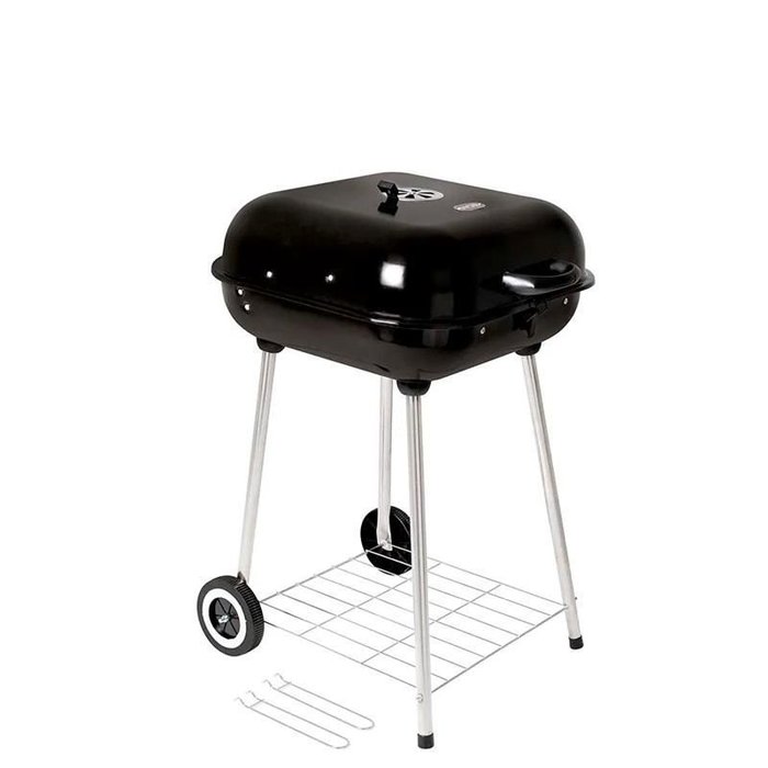 Produzida em aço esmaltado, sendo os pés e grades em aço cromado e detalhes da tampa em polipropileno, acompanham a churrasqueira dois acessórios para retirada das grelhas, que facilitam a limpeza, e regulador de ar na tampa, que auxilia na hora de assar os alimentos por igual.