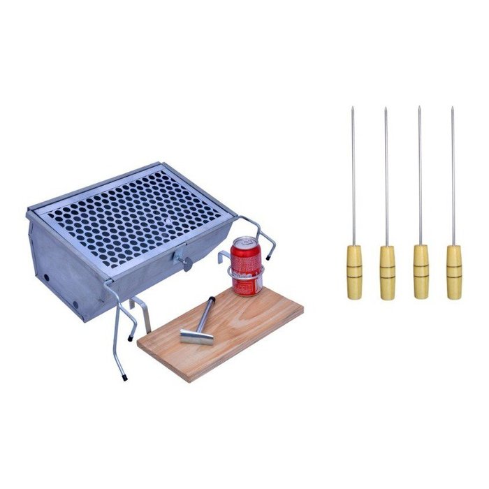 Churrasqueira Para Barco + Tábua De Corte Com 04 Espetos