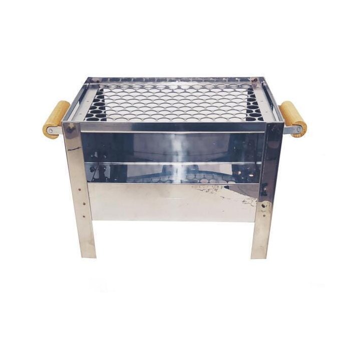 Churrasqueira pequena Aço Inox 430, portátil e de fácil utilização.