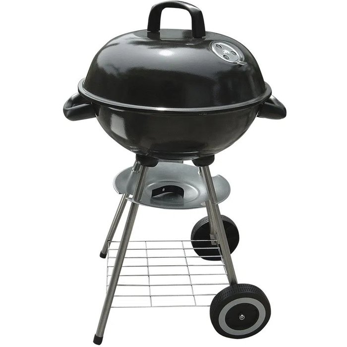 Churrasqueira Portátil Carvão Texas Nautika com Rodinhas e Grelha para Camping Preto.