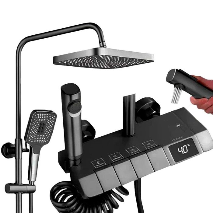 Chuveiro 4 Saídas Misturador Digital Preto -