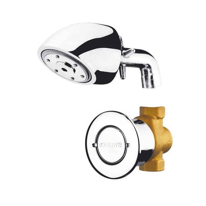 Pode ser adquirido completo (chuveiro + válvula de chuveiro) ou separadamente. Possui exclusivas travas de ancoragem, que impossibilitam sua remoção. Crivo fixado com parafuso antivandalismo. O volume de água liberado e o tempo de funcionamento permanecem constantes ao longo da vida útil do produto.