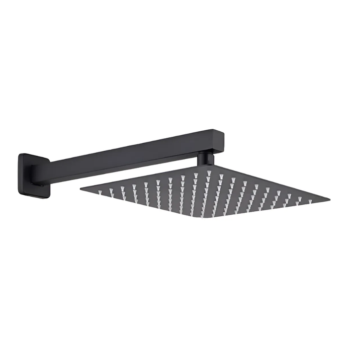Chuveiro Quadrado em Inox com Acabamento Preto Fosco - Ducha 20x20cm e Braço 40cm