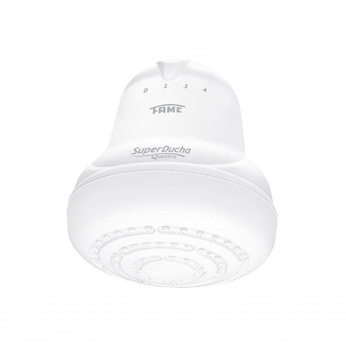 O Chuveiro Elétrico Quattro 4t da Fame na cor Branca. É a opção ideal para quem necessita de uma instalação completa, padronizada e melhor custo benefício. Além disso segue também chuveirinho manual, com suporte/bucha e parafuso de fixação.