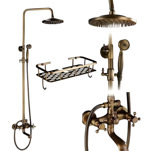 Chuveiro Retrô Bronze Antigo Misturador Água Quente/fria Bronze