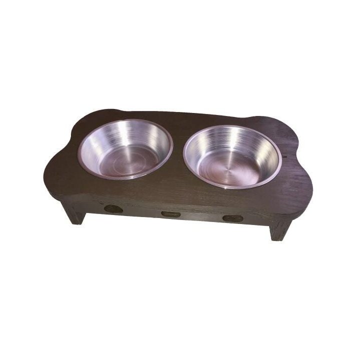 Comedouro e Comedouro Cachorro ou Gato de madeira com dois potes de aluminio