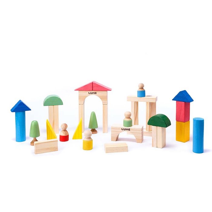 Cidadela - Brinquedo Educativo de Madeira, Blocos de Montar 32 Pç, Mini Cidade, Construindo Cidades