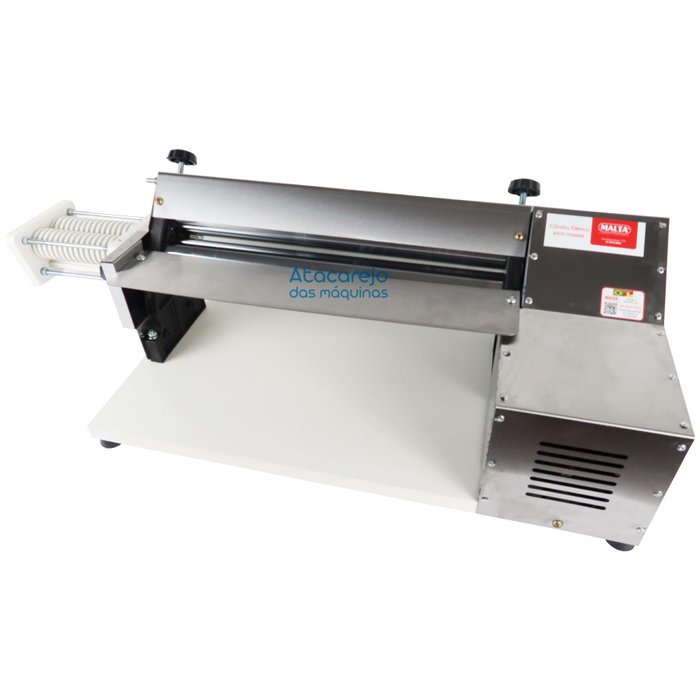 Cilindro Elétrico de Massas Inox para Pizza Pão 40cm Malta cinza, branco e cromado