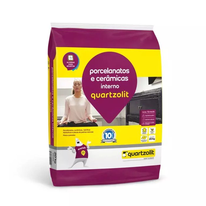 Cimento Cola Porcelanato Interno Cinza Quartzolit 20kg