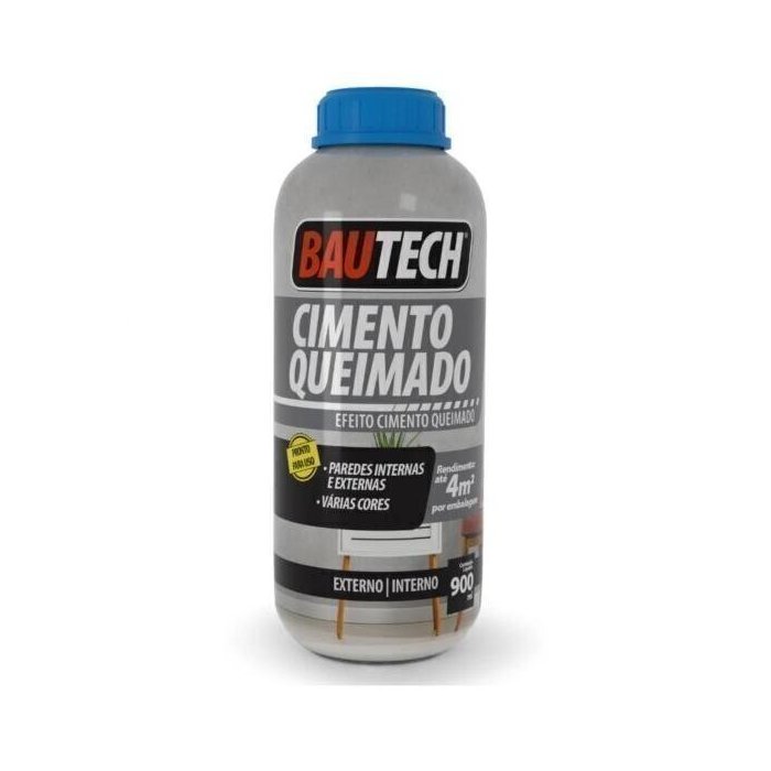 Cimento Queimado Líquido Bautech 900Ml - Grafite Bautech efeito cimento queimado é um revestimento para paredes com acabamento semelhante ao cimento queimado. Pronto para uso, basta apenas misturar e aplicar, possui excelente textura e estética final, com um fino acabamento. Campos aplicação Em paredes de alvenaria, concreto e já pintadas em áreas internas e externas. Indicado para embelezar e proteger superfícies. Características técnicas Sem cheiro Secagem rápida Alta aderência Alta durabilidade Acabamento fino Pronto para uso Ótima estabilidade de cor Resistente aos raios u.V. Demãos necessárias: 2 a 3 demãos Secagem ao toque: 3 horas Tempo entre demãos: 4 a 8 horas Liberação após a última camada: 24 horas Cura final: 5 dias Preparo do produto Pronto para uso, basta misturar e aplicar. Rendimento: até 4 m As imagens são meramente ilustrativas.
