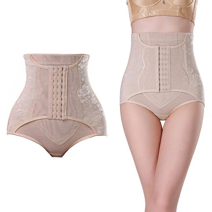 Cinta Calcinha Modeladora Aperta Barriga Alta Compressão Flores Bege Tamanho:xxxl Bege