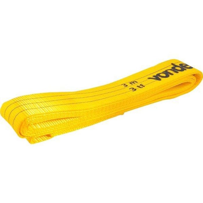 Cinta Elevação De Carga Vonder 7:1 3 Metros 3 Toneladas Ref. Fornecedor: 8014303090 Marca: VonderConteúdo Embalagem:1 Cinta para elevação de cargasAplicações e dicas de uso:Indicada para elevação e movimentação de cargas. Nunca utilizar para transporte e elevação de pessoas ou animais.Destaques e diferenciais:Possui excelente resistência, flexibilidade e facilidade no manuseio, reduzindo o esforço durante a operação, além de oferecer menor risco ou danos na movimentação de cargas. Cinta plana de elevação de carga tipo anel.Características Técnicas:Carga de trabalho da cinta em elevação vertical/direta: 3,0 tf Comprimento total da cinta elevação de carga: 3,0 mFator de segurança da cinta de elevação de carga: 7:1Largura da cinta: 90,0 mmMaterial da cinta: 100% PoliésterNorma de referência da cinta : ABNT NBR 15637-1Produto: Cinta